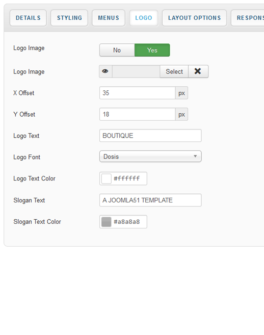 Your template parameters can be access directly from your Template Manager giving you access to a host of features including a selection of template styles, some colour choosers to help customise your template headers and links, a number of layout options and easy to use logo settings.